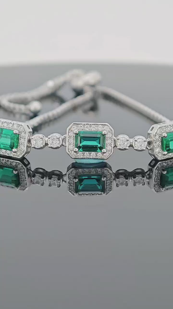Elegant S925 Silver - Inlaid Cultivated Emerald Bracelet: A Touch of Luxurious Green